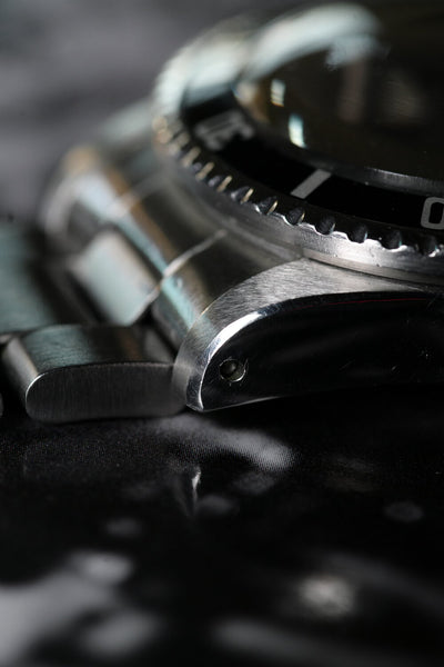 Description: 1978 Rolex 1665 sea-dweller. Excellent collectors grade 1665 with recently polished case with excellent beveling. The 1665 reference was the first dive watch to feature a helium escape valve. This allowed divers to dive to further depths and resurface without fearing their crystals popping off due to helium gasses not escaping. Excellent super dome crystal. Patina on the lume is nice and even yellow patina