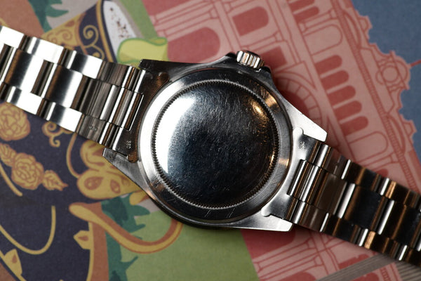 Description: 1988 Rolex 5513 Submariner , transitional wgs dial. This transitional 5513 houses the white gold surround glossy dial while in the vintage 5513 body with plastic dome crystal. This combination makes for some of the rarest Sub’s out there as they were only produced for a couple of years before the introduction of the 14060 body. It remains in excellent conditon.