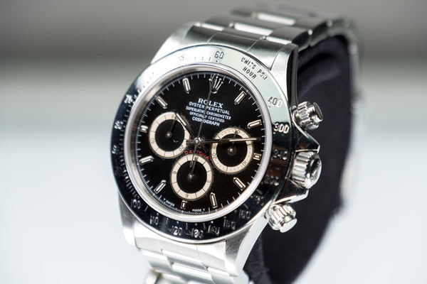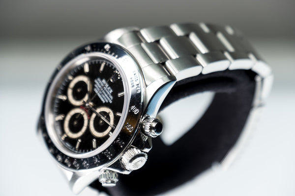 Description: An Excellent Zenith Daytona 16520 with browning subdials going tropical. This 16520 is also known as having an "inverted 6" dial, as the center subdial "6" looks like a "9". The Mk4 and subsequent Dials have this feature reversed. "Patrizzi dial" is often thrown around left and right and although they are more common on MK4 dials, MK3 dials seem to have the browning subdials in various states. It is believed to be late MK3 - MK4 dials where this patrizzi effect seem to be the most prevalent.