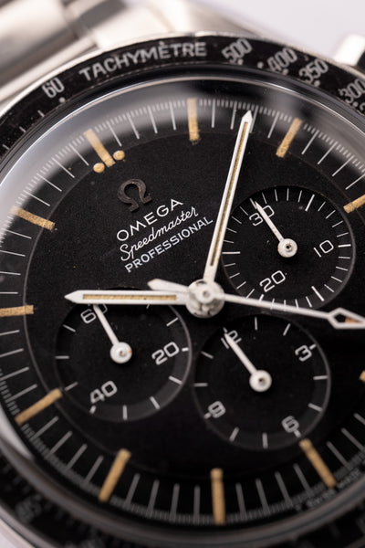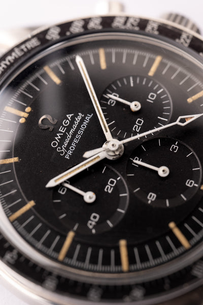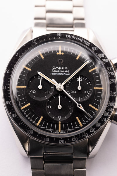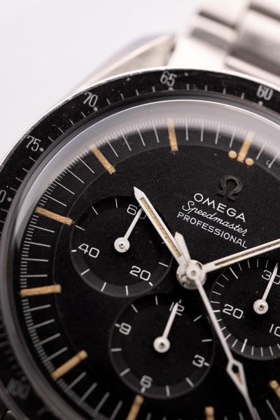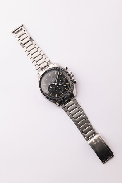 Description: 1967 Omega Speedmaster reference 104.012. This is a beautiful Pre-Moon Speedmaster with the much desired Applied logo, Step Dial, and Dot Over 90 bezel. This checks all the marks as well as having the infamous 321 movement.
