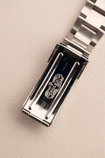 Description: The matte dial, meter’s-first variant dial is one of the most collectable vintage submariners out there. Known for a period in time where Rolex’s sales were not primarily in North America, the metric standard was prioritized and thus “200m” came before the American Standardized “660ft” measurement. This quickly changed as the consumption of Rolex watches in the United States ramped up surpassing European sales. As a result the “ft-first” dial came in late 69 and carried forward to this day.