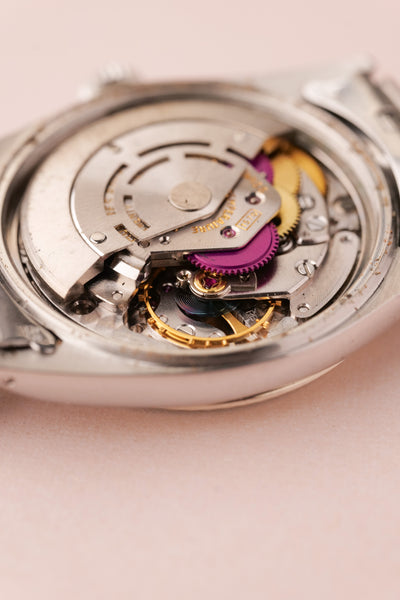 Description: 1970 Grey Sunburst Dial. The dial has a machined look to it and shows a metallic grey when seen in the sun. Lume is all intact and the dial overall is in great condition. This 1601 is unpolished with the lugs nice and sharp all around. Watch has the original papers as well.