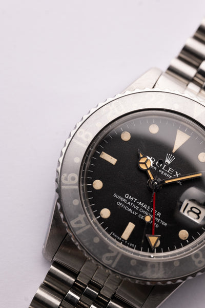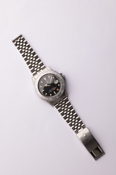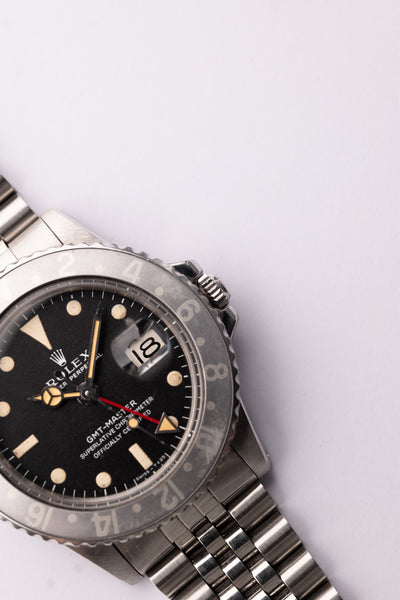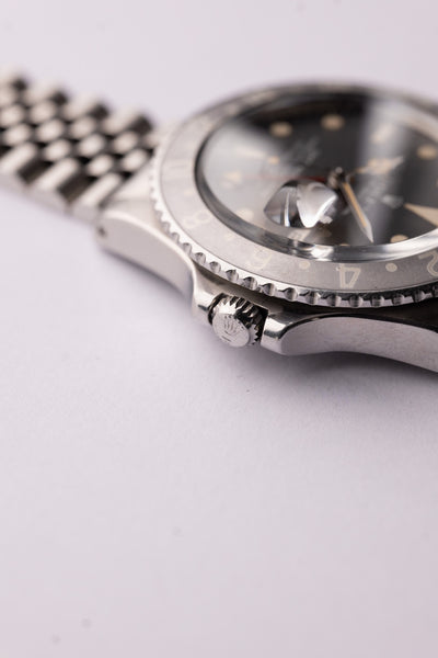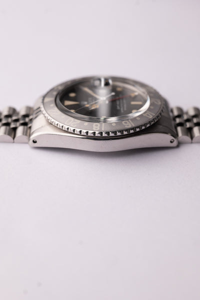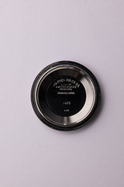 Description: Excellent Condition 1675 MK1 dial and case with a ghost insert. Light medium patina color lume with a thick case. This 1675 would pair well with a fuchsia insert or as is with its ghost insert.