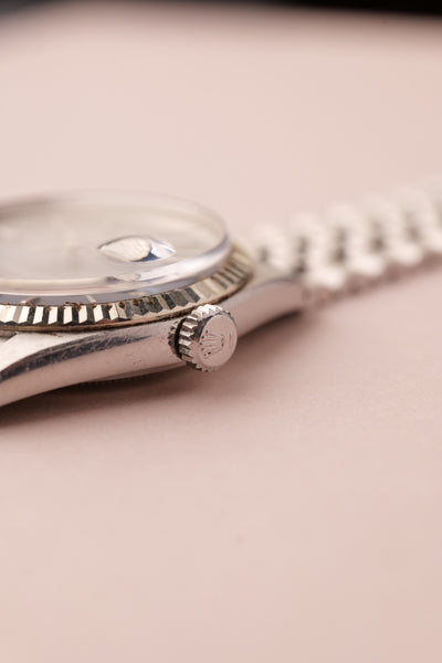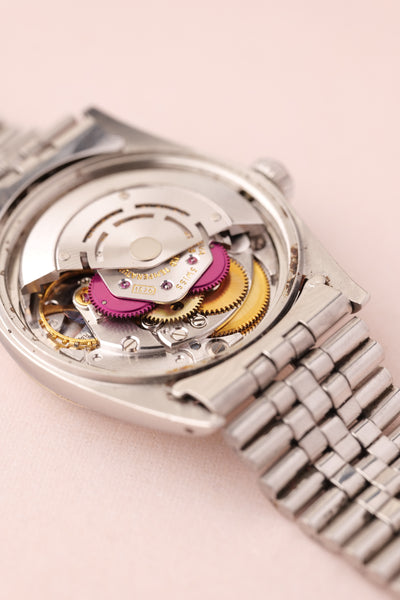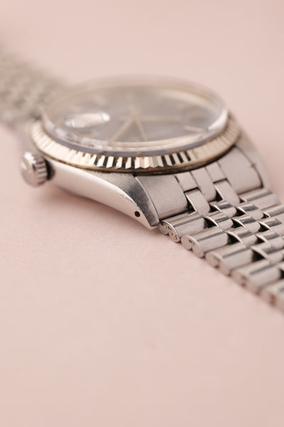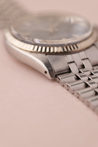 Description: 1972 Rolex 1601 Date-Just. This is beautiful example of the Date-Just with the Sigma blue Dial paired with the pumpkin lumes plots. It’s very rare to come across pumpkin lumes with these early Date-Just’s still intact. Watch appears unpolished with maybe slight sleeve polish over the years from wear.