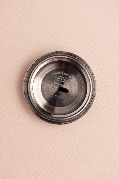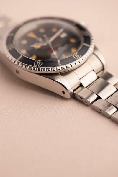 The patina on the lume is an amazing pumpkin coloring that matches the hands very well. On the dial there is missing paint from the hash markers on the outer edge of the dial at 1, 8 and 9. This is actually a common phenomenon that happens with this generation of 1665 dials. The case has is extremely thick and even from the lugs to the crown-guards and appears unpolished with factory bevels still intact. This is a very sharp and excellent case.