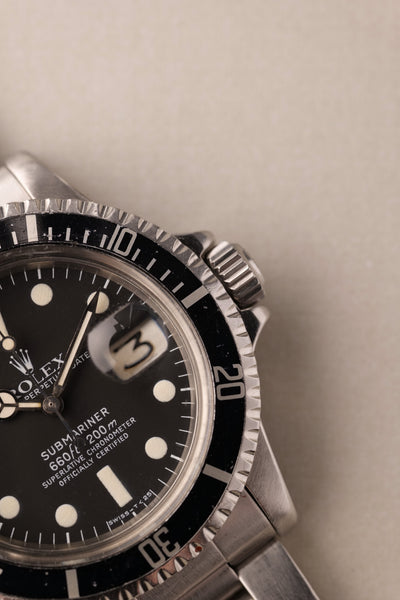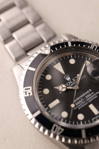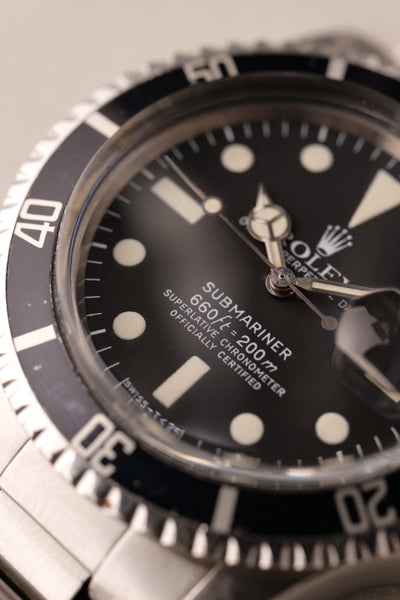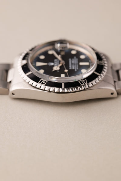 Description: This 1680 Submariner is in excellent condition. The lume exhibits a classic yellow patina and is complimented by a deep black insert. Case is thick and even and shirt sleeve polished over years of wear given the bevels and overall case appearance. This case is thick!