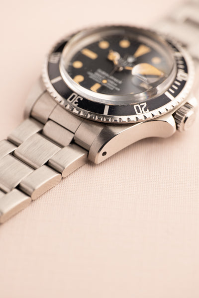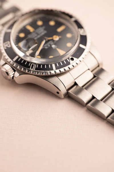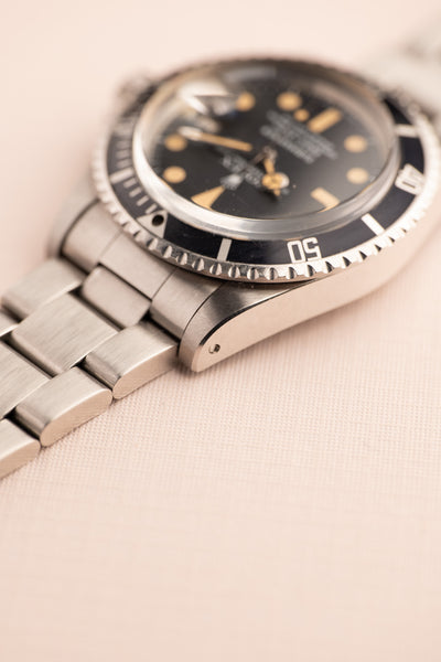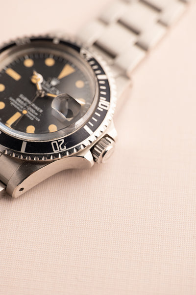Description: 1978 Rolex Submariner with an excellent pumpkin-ishdial. Pumpkin or deep orangeish colored lume has been on every collector’s wishilist. They truly make the watch pop amongst even other yellowish lume that vintage Rolex’s are known for.