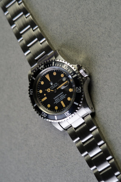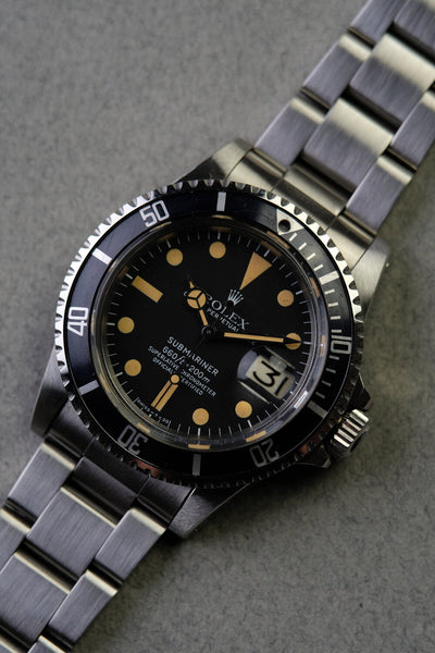 Description: 1978 Rolex Submariner with an excellent pumpkin dial. Pumpkin or deep orangeish colored lume has been on every collector’s wishilist. They truly make the watch pop amongst even other yellowish lume that vintage Rolex’s are known for. This watch made its way to us via Mexico and we couldn’t imagine any other climate that would have cultivated such a unique looking watch.
