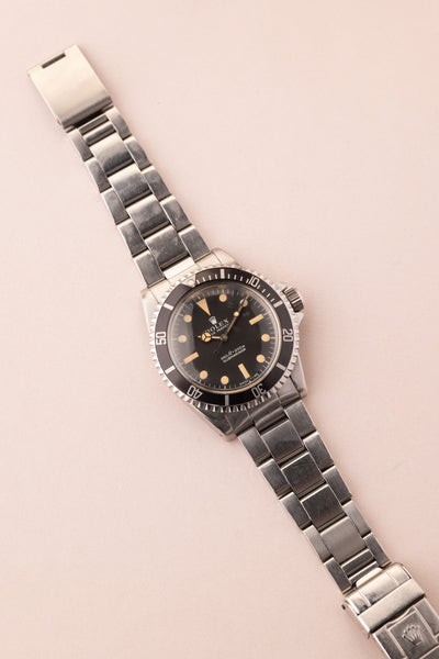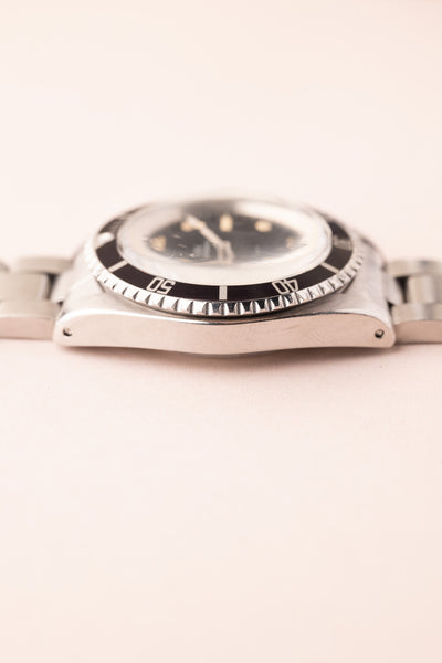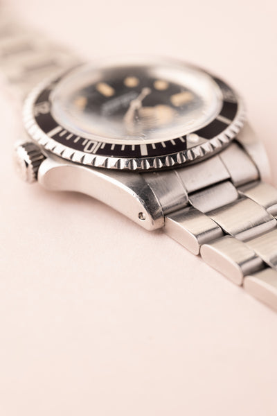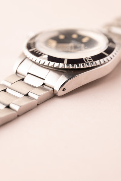 Description: Some watches that we get in punch above their weight. This 1972 “ft-first” dial Submariner is a perfect example of this. Despite being classified as the classic Submariner, this 5513 has an amazing honey colored lume. Adding to its charm are the unpolished lugs that are thick and defined by its bevels. We could explain every single detail of this watch to you and it still couldn’t capture it’s beauty.