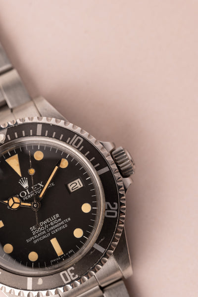 Description: This MK4 Dial 1665 is something you don’t see too often with its ghost insert. The lume balances perfectly against the grey insert and has a very pleasing yellow lume.