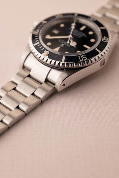 Description: Triple 6 sea-dweller’s are a perfect neo-vintage dive watch that showcases the best of the tritium dials with there varying degrees of color patina and the feel and robustness of modern Rolex cases and sapphire crystals. This one in particular has aged to a orangish hue on the dial, which contrasts nicely with the faded black insert. The case is thick and in excellent condition having previously been polished before.