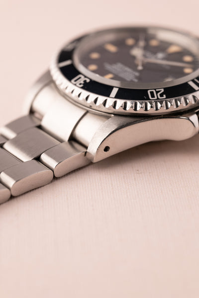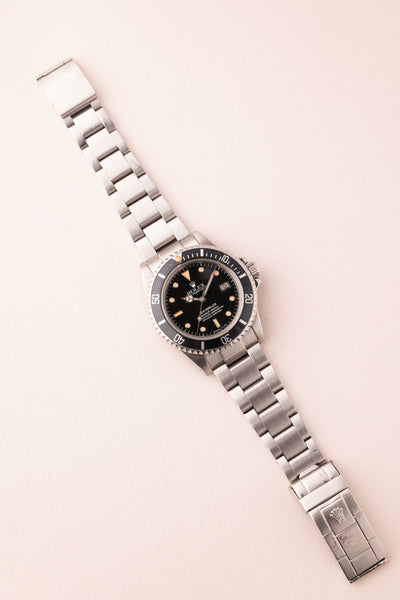 Description: Triple 6 sea-dweller’s are a perfect neo-vintage dive watch that showcases the best of the tritium dials with there varying degrees of color patina and the feel and robustness of modern Rolex cases and sapphire crystals. This one in particular has aged to a pumpkin hue on the dial, and has lighter tritium hands which is often seen on these neo-vintage watches. The insert is correct as well and has a beautiful black insert with pearl to match. The case is thick and in excellent condition having previously been polished before.