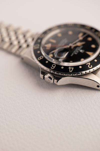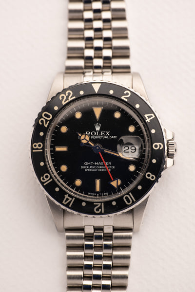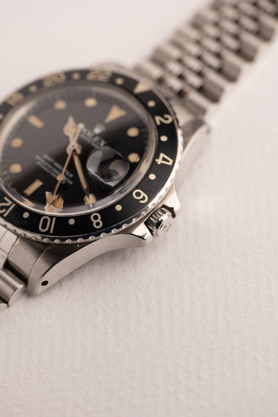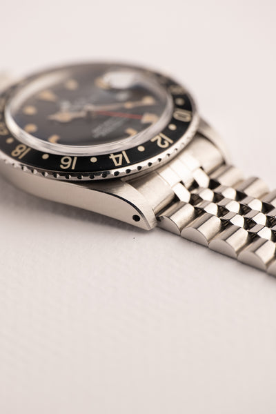 Description: When we get asked what Rolex are the best investments without having to give up an arm and a leg, we point them to neo-vintage pieces. The 16750 GMT sits on the early side of the neo-vintage scale coming shortly after the 1675 classic plexiglass variant.