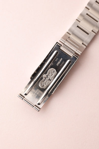 The dial indices are a deep pumpkin color and the gloss dial remains very glossy. There is a light hand drag at the center of the dial that can be seen in certain lighting. The case is in excellent condition and has sharp thick bevels throughout.