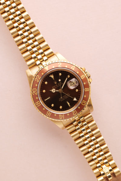 Description: 1984 Rolex Gold 18k 16758 nipple dial GMT