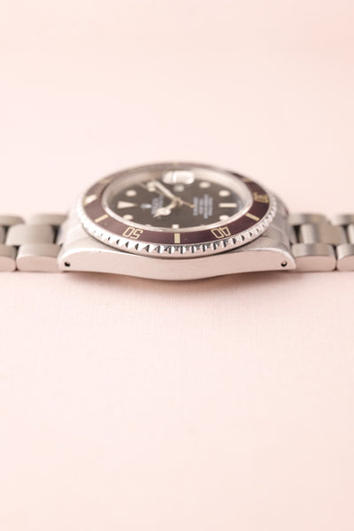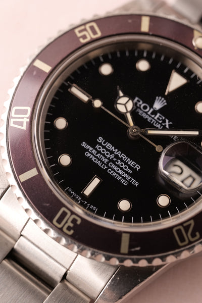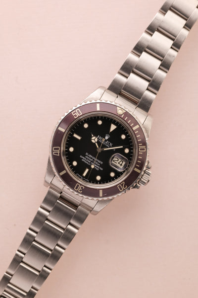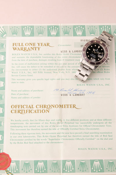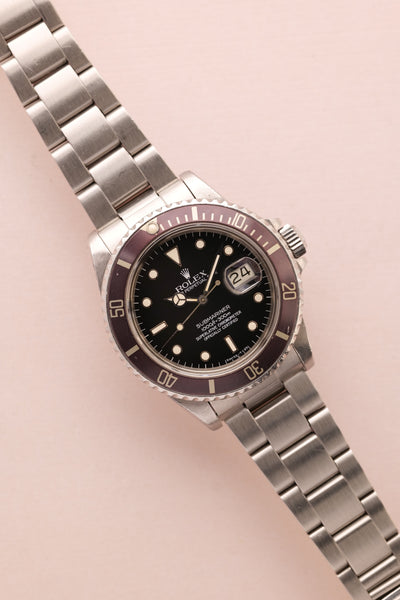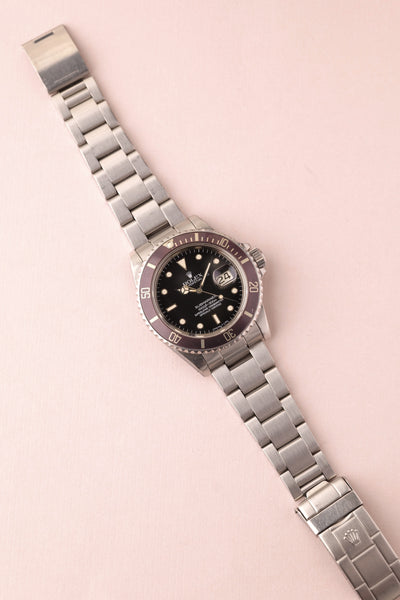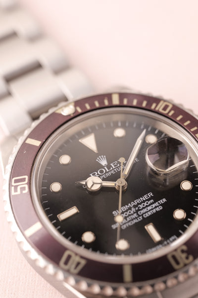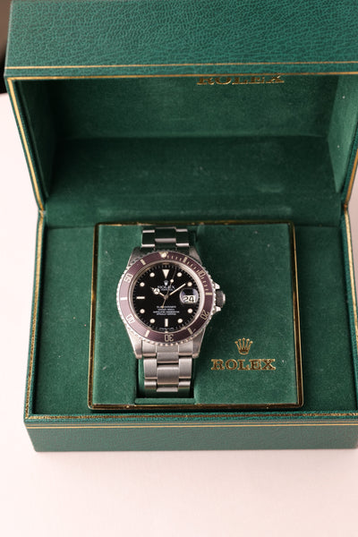 Description: A near one of a kind watch. Full set. Unpolished. This 16800 Lavender is one of the most unique Sub’s we’ve come across. The insert has faded into a beautiful silky light purple finish and paired with the accessories and unpolished case proves that beauty trumps rarity in this case.