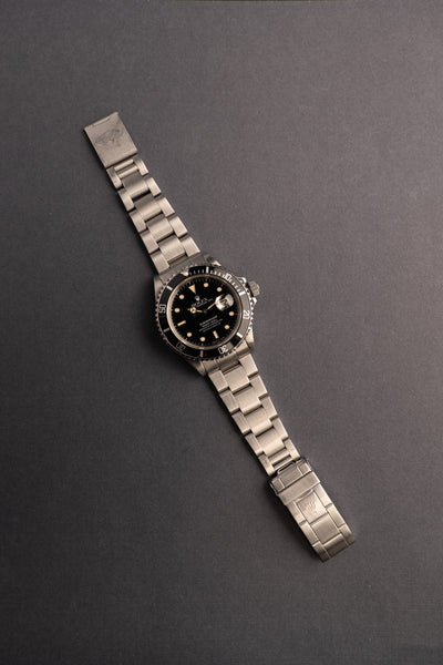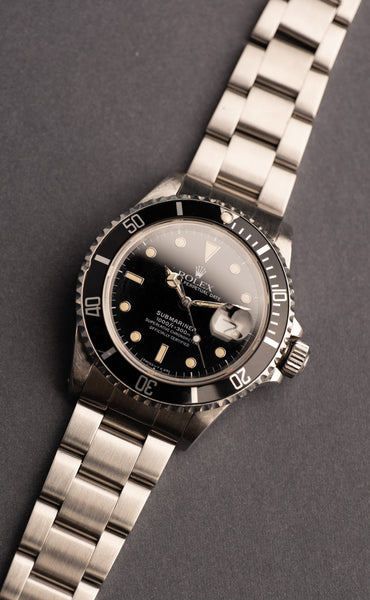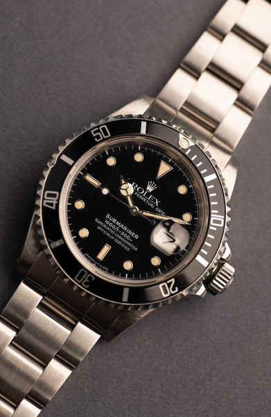 Description: The “triple 0” 168000 Submariner is one of the rarest White Gold Surround Submariner’s in existence. Believed to be made for only a couple of years, the 168000 sits between the 16800 and 16610 as a transitional watch. It houses the 3035 movement that the 16800 had, but differed in that the Steel that was used was shifted from 316L to 904L. This means that this was the first Submariner to be housed in 904L. The Lume is intact and original with the only exception being the seconds hand which has been replaced. This is a very unique Sub not only in it’s reference but also by its condition. There is a small ding on the bezel but does not effect retention of the insert.