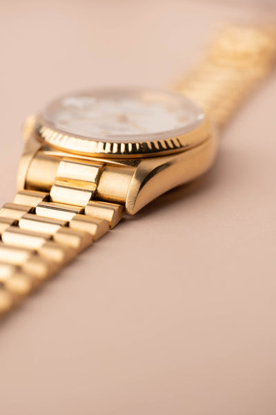 Description: This 1986 Day-Date reference 18038 is the classic day-date. Buckley or Roman dial as its referred to describes the type of dial that gives this 18038 its personality.