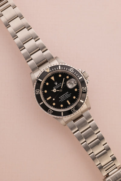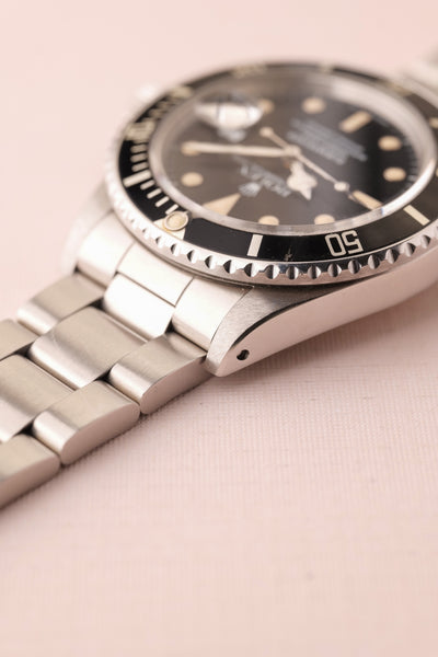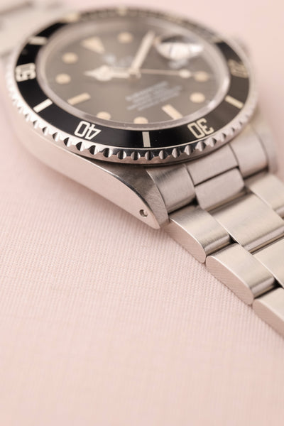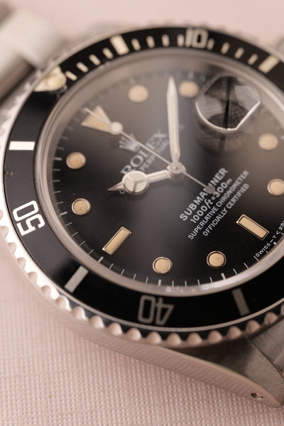 Description:  The “triple 0” 168000 Submariner is one of the rarest White Gold Surround Submariner’s in existence. Believed to be made for only a couple of years, the 168000 sits between the 16800 and 16610 as a transitional watch. It houses the 3035 movement that the 16800 had, but differs in that the Steel that was used was shifted from 316L to 904L. This means that this was the first Submariner to be housed in 904L. This particular 168000 is in excellent condition. The dial lume is creamy and even throughout and the black glossy dial remains very reflective still.