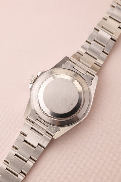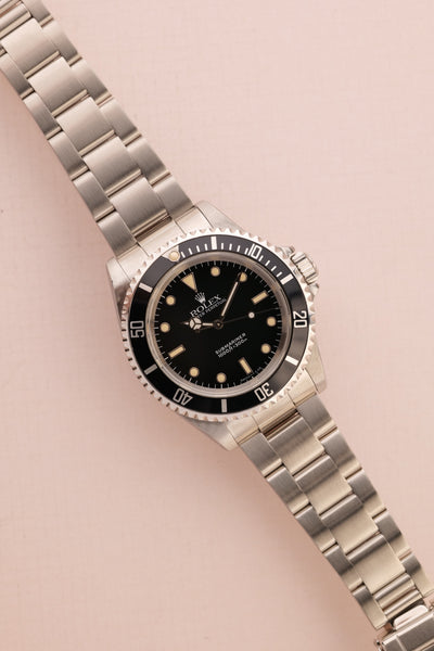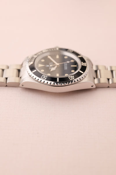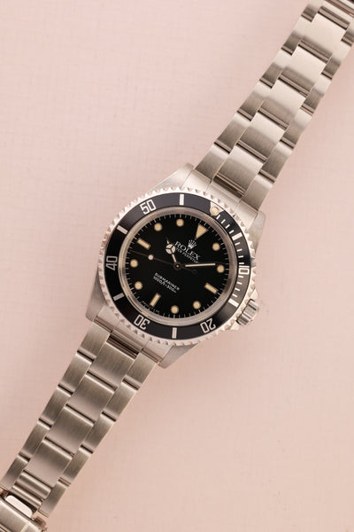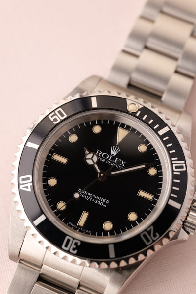 Description: Out of the Neo-Vintage watches that have gained tremendous popularity over the past few years perhaps none have been more overlooked than the 14060 no date Submariner. Produced in far fewer numbers than the more popular 16800 reference, this Sub model provides a clean symmetrical dial without cluttering up the face of the watch with a date function or cyclops. The case as you can see is great condition and retains sharp bevels throughout the case. This model is also a tritium dial variant which is reflected by the creamy lume on the dial. Case begins with an N serial