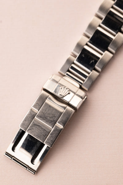 Description: The 16520 can be considered the 993 generation Porsche of the Daytona line up. It has a robust Zenith chronograph movement and was the first 40mm Daytona to be introduced to the Rolex line up. The white panda variant dial features a 6 that appears inverted on the 6 o’clock sub-dial. The case is in excellent condition that appears lightly polished but this is very hard to determine as the case has very sharp bevels that could have just been sleeve worn. These white dials have gained tremendous popularity over the years and the monochromatic look is something very unique given the time period this came out in.
