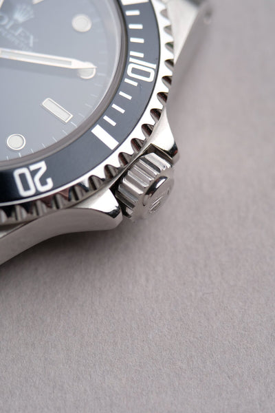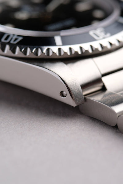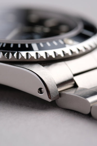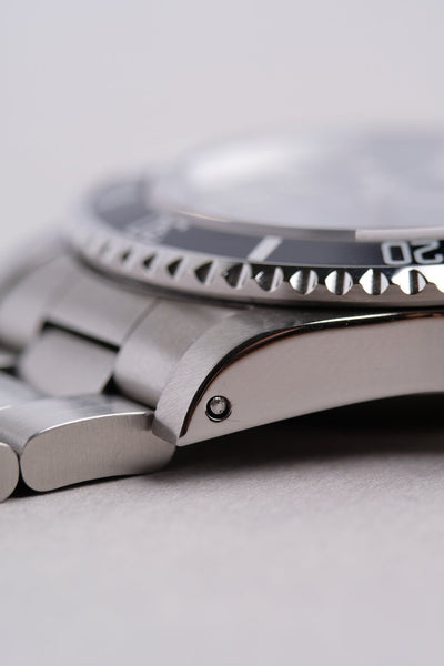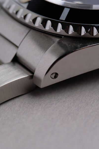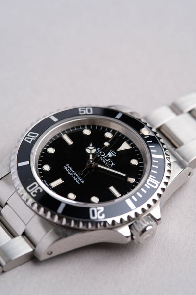 Description: The submariner that most purists want are the non-date dial submariner’s. The symmetry in the dial is a nod to the early submariner examples. This 14060 features a bezel that is closer to a dark blueish hue. The dial also features light custard colored patina on the lume and a very glossy dial free from spidering defects. The case may have been polished once in it’s previous life and is thick and sharp.