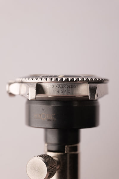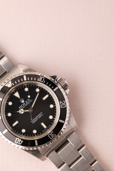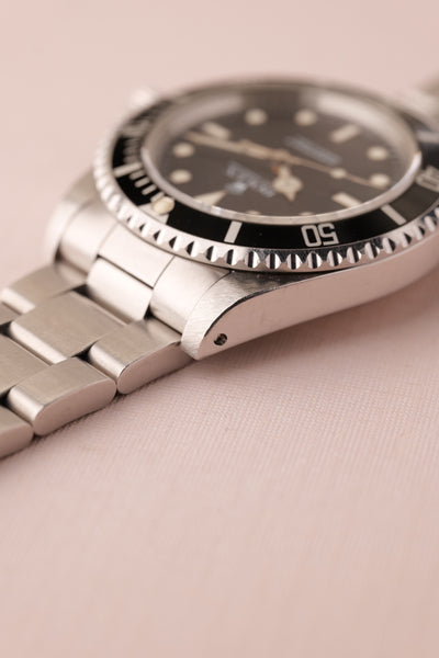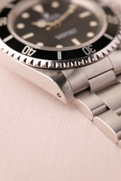 Description: Out of the Neo-Vintage watches that have gained tremendous popularity over the past few years perhaps none have been more overlooked than the 14060 no date Submariner. Produced in far fewer numbers than the more popular 16800 reference, this Sub model provides a clean symmetrical dial without cluttering up the face of the watch with a date function or cyclops. Unpolished case and deep glossy dial make this 14060 one not to pass up