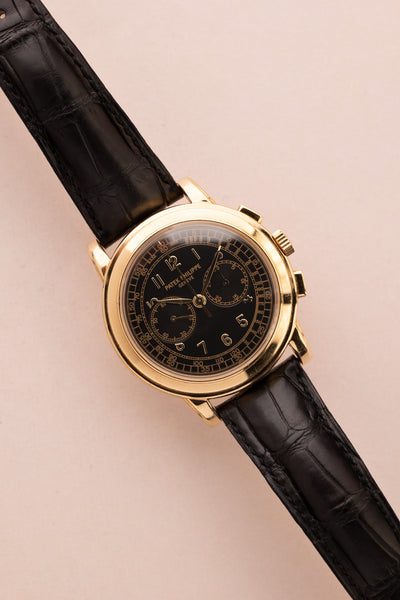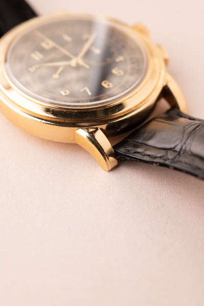Description: In our opinion, Patek at its best has always been on a leather strap, and no other vintage Patek has as much character as the 5070J for us. This 42mm dress watch is elegant yet understated. The Gilt lettering and numeric numbers offer a balance of proper horology dial design as well as an air of sportiness. The future owner of this watch is encouraged to seek out the archive papers to round out this set if they really desire, but frankly all one needs to do is buy this watch and never take it off their wrist.