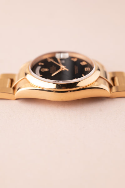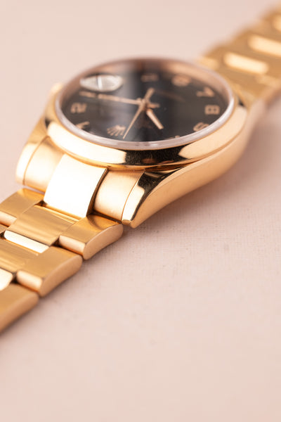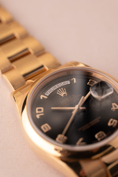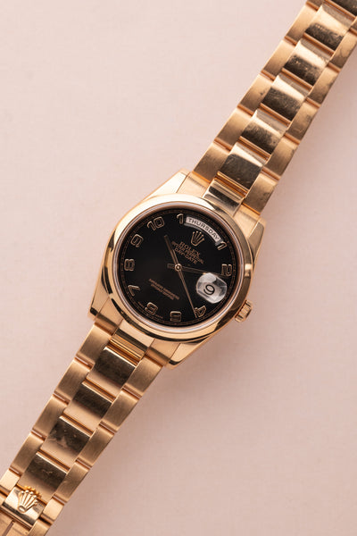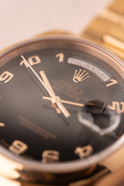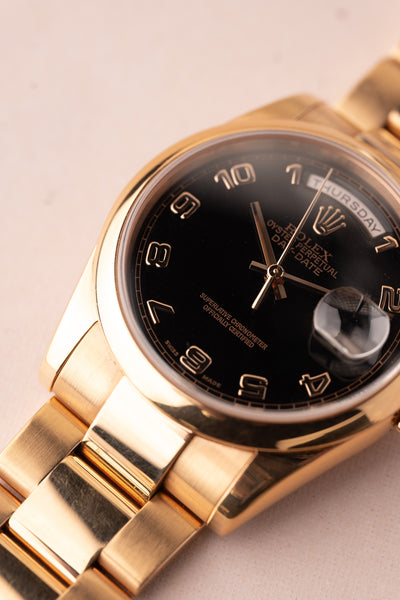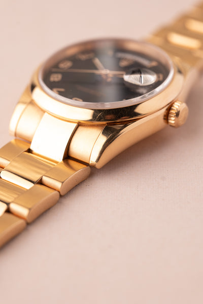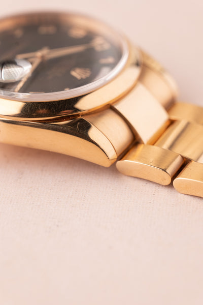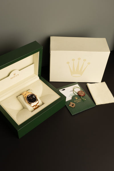 Description: This 2000 Rolex Day-Date is a beautiful watch in itself. However this one in particular has been made from Rose Gold and sports a smooth bezel on Oyster bracelet. These distinctive features separates itself from the other rare gems of its day. This is a full set watch that is unpolished and in amazing condition. Find another like it.