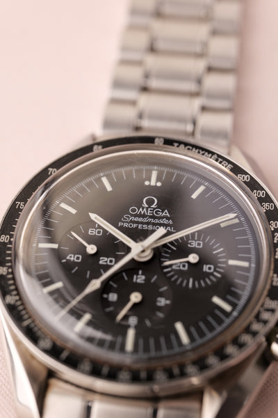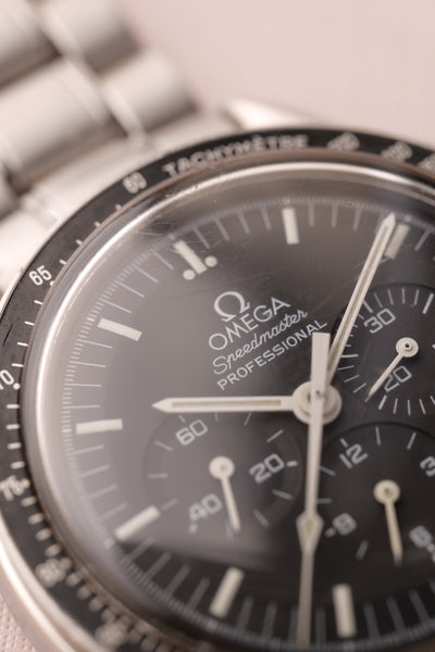 Description: Ref: 3570.50 Omega Speedmaster with Original Luminova Dial. Comes with paper and guarantee card