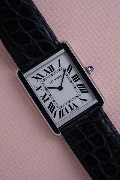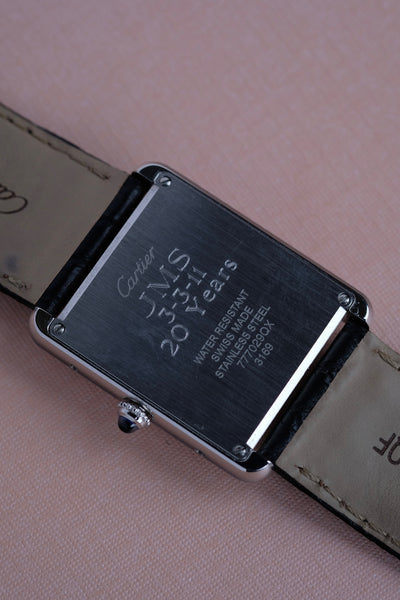 Description: Cartier Tank Solo size L. Engraving on caseback. Quartz movement in excellent condition. Full set box and papers