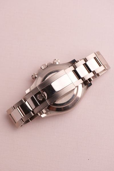 Description: We typically don’t carry many modern watches, but this 116509 Daytona is definitely an exception we are willing to make. The offset contrasting colors of the dial and subdials remind us of the 4-digit Daytona’s as well as the more exotic dial offerings. This watch is complete with box/papers/tags/booklets. Unpolished with some minor wear from the 3 months the previous owner wore it.