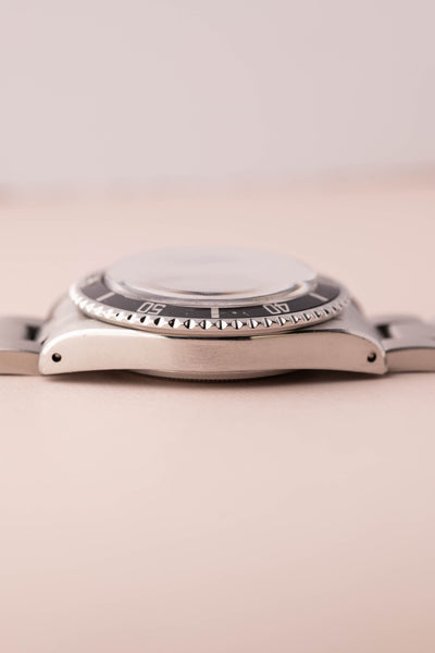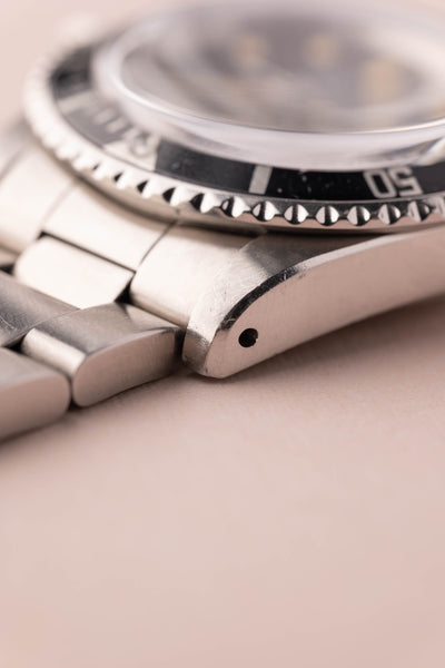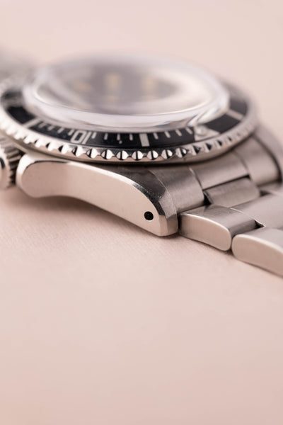 Description: The 1680 used to sit below the 5513 as a value play for those that did not want to pay the 30% premium for a 5513 dateless sub. We are beginning to see these neglected references catch up justifiably to their counterparts. This submariner has an amazing near pumpkin dial with a true-dome crystal. The case is phenomenal and appears unpolished. The insert pip appears to have been replaced but who really cares. Insert is period correct