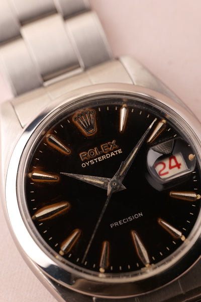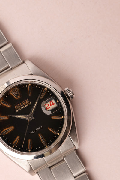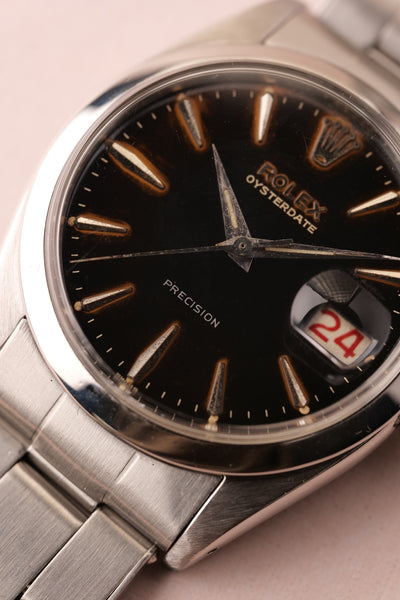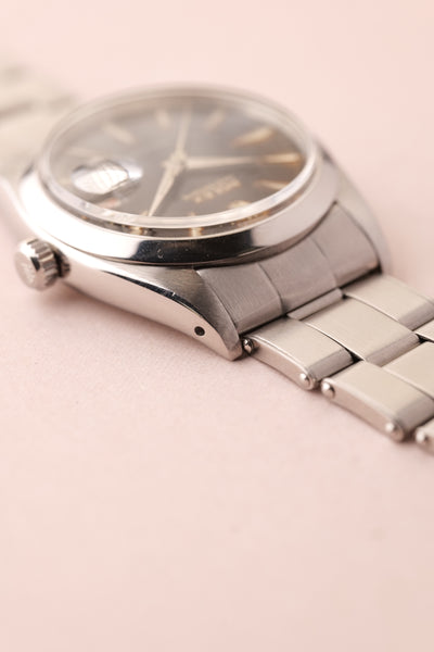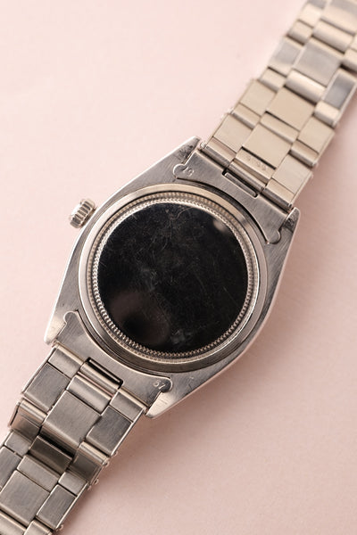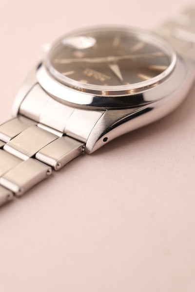 Dial: The 6694 Oyster is a 34mm undercover hitter. This watch punches above its weight and barely feels smaller than a 36mm datejust. This has a gilt gloss dial with some spidering in certain lighting. The areas around the indices have turned to a tropical brown and it has a red date wheel. Case is very thick and appears unpolished.