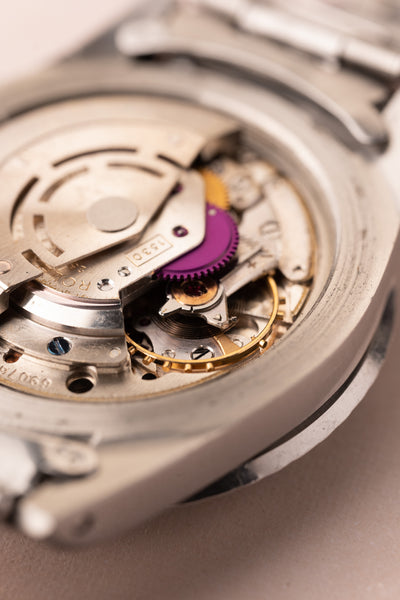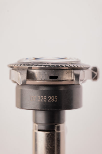 Description: 1960 Rolex 5512 Gilt Chapter-Ring w/ Exclamation Dial Submariner. This 5512 has one of the best dial color’s we’ve seen in a 5512. The lume exhibits a warm toasty yellow color and matches tones seen in the gilt lettering and dial. The exclamation point is present as well in this 5512. Insert is a ghosted MK2 Long five insert. Dial is in amazing condition and remains very glossy and reflective throughout the dial. The case appears recently polished but remains super thick and even with sharp bevels throughout.