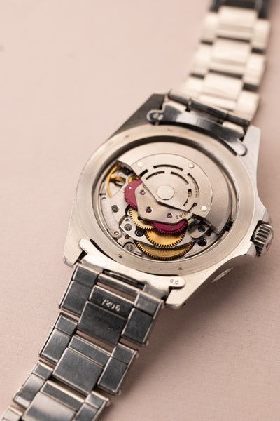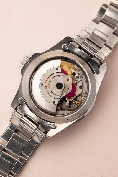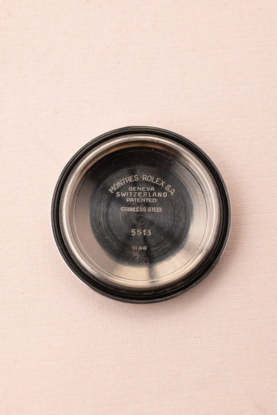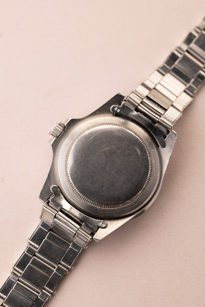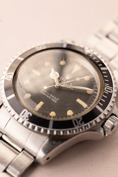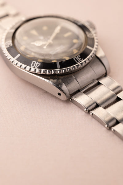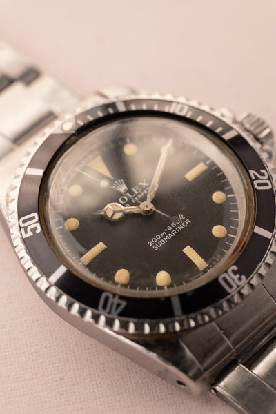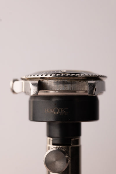 Description: The 5513 is known as the cult classic submariner. It solidifies itself as the bridge between the vintage crownguard-less subs of the past as well as solidified cues of design that have not left the modern Subs of today. This gorgeous meter’s first example is named after the “200m = 660ft” depth rating having preference for the metric system as opposed to the American Standard. As Rolex developed more of an audience in America and it’s shares climbed, it standardized “Ft” first going forward. This 5513 in particular has a nice yellow lume and and an excellent case that has appears unpolished. The insert appears to have a scratch or crack near the pearl but it is stable.