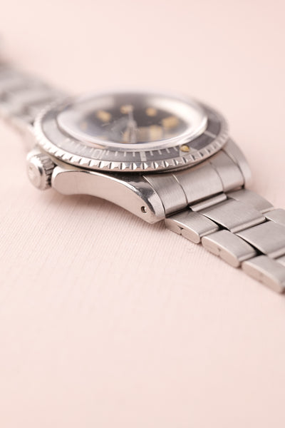 Description: The matte dial, meter’s-first variant dial is one of the most collectable vintage submariners out there. Known for a period in time where Rolex’s sales were not primarily in North America, the metric standard was prioritized and thus “200m” came before the American Standardized “660ft” measurement. This quickly changed as the consumption of Rolex watches in the United States ramped up surpassing European sales. As a result the “ft-first” dial came in late 69 and carried forward to this day.