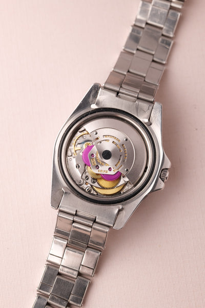 Description: When we close our eyes and think of the perfect 1675 GMT, this watch comes close to mind. Let’s break it down. The dial is a beautiful MK1 “Long-E” 1675 with excellent lume. The color is a bright yellow that contrasts nicely against the matte black dial. The insert, has faded evenly and beautifully into a saturated blue and salmon color.