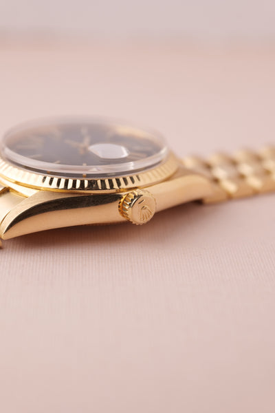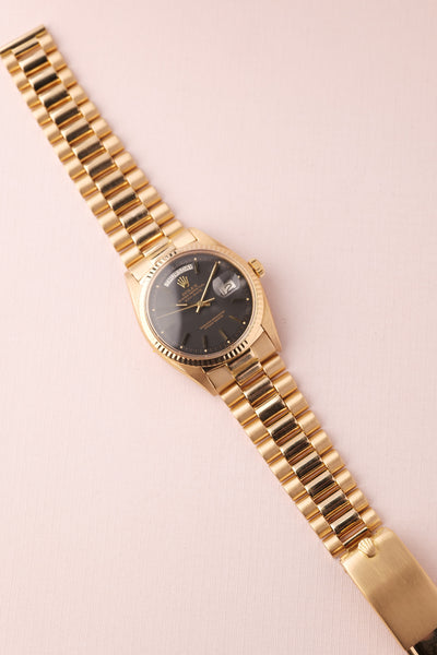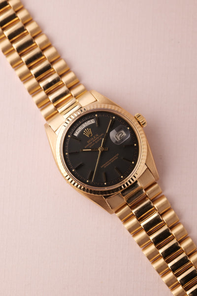 Description: An exceptional Matte black 1803 w/ a complete set. Excellent case with full link president bracelet.