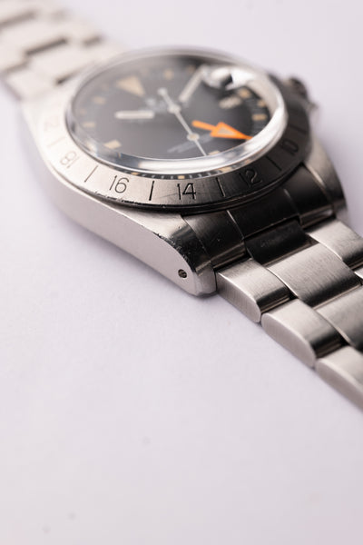Description: The 1655 Explorer II is one of those watches have rarely stocked. Known as the “Steve McQueen” this MK4 example ticks all the important boxes; 10/10 dial and an honest unpolished case with fat bevels and crown-guards. This watch came from the original owner and we couldn’t be more ecstatic to bring it to market