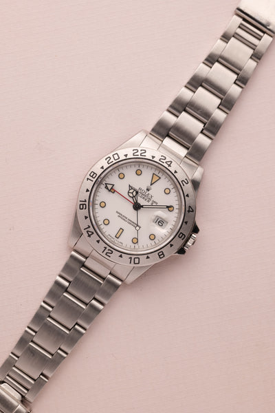Description: Chi-Chi Polar Explorer II refers to the extreme yellow coloring present on the hands and dials of this Explorer II. These are one of the most desirable Explorer II’s and have traded at huge premiums Case is excellent and is thick and even throughout the case.