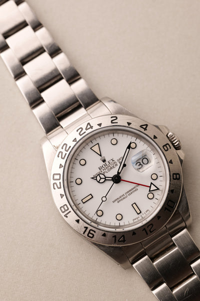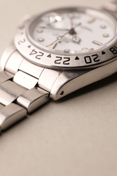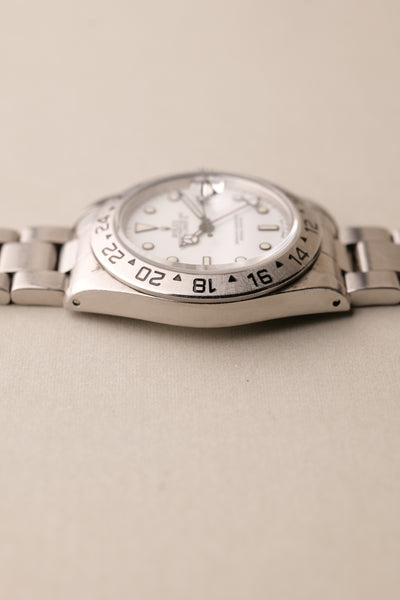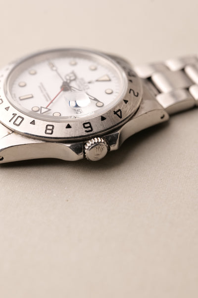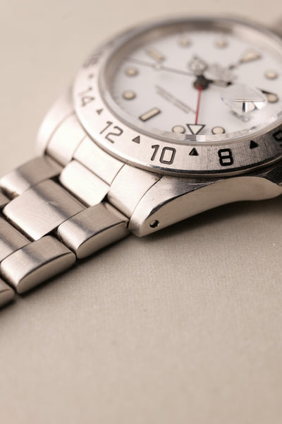 Description: An excellent 16570 Polar Explorer from 1991. The case is lightly polished and still remains super thick all around The tritium shows a yellowish creme which contrasts nicely against the polar white dial; similar to the chi chi dials that are a bit more yellow