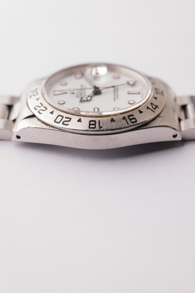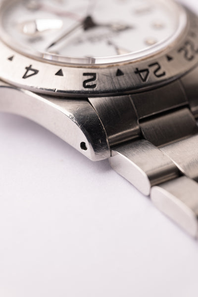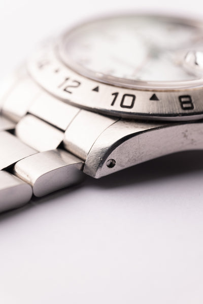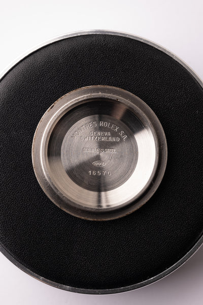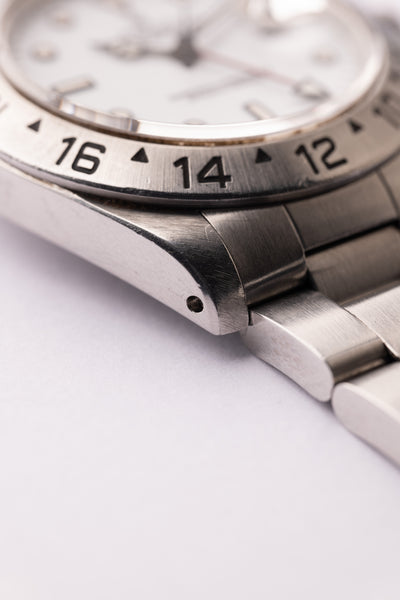 Description: An excellent 16570 Polar Explorer from 1991. The case appears unpolished and still remains super thick all around. The caseback sticker remains present as well. The tritium shows a yellowish creme which contrasts nicely against the polar white dial; similar to the chi chi dials that are a bit more yellow