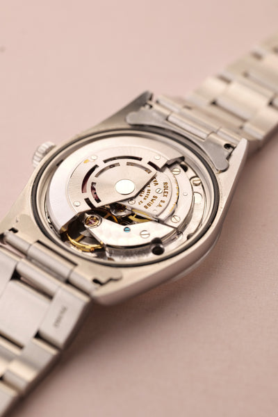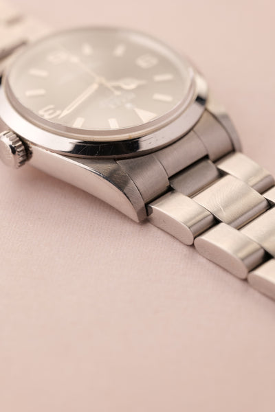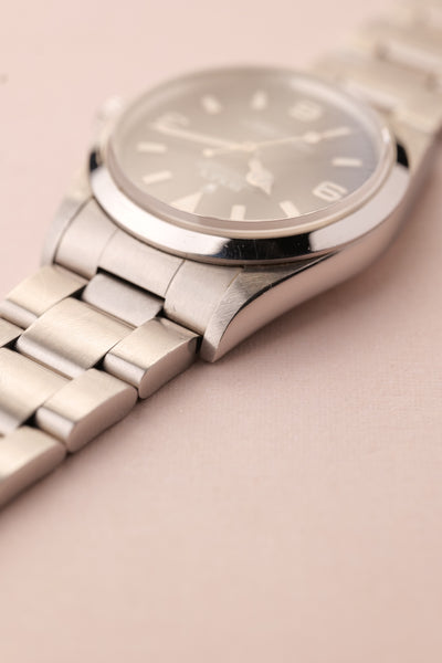Description: The 14270 Explorer is the close descendant of the infamous 1016 Explorer. Maintaining the 36mm case, it wears with ease and pairs well with casual jeans or a summer suit. The lack of a thick bezel makes it the ideal discrete sports watch and has recently become a favorite of ours outside the traditional Sub or GMT watch. The 14270 to chase after for us are the tritium lume variants as these are the last tritium Explorer’s made. They offer a tint of yellow and color to an otherwise very monochromatic look. The case is excellent on this watch and the lume definitely has a warm yellow tone.