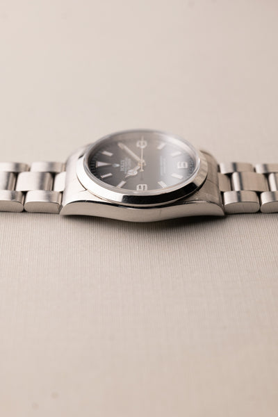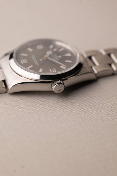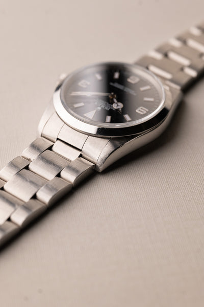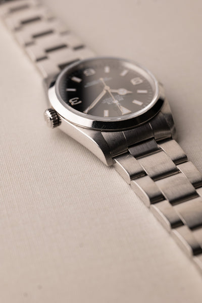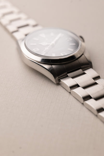 Description: The 14270 Explorer is the close descendant of the infamous 1016 Explorer. Maintaining the 36mm case, it wears with ease and pairs well with casual jeans or a summer suit. The lack of a thick bezel makes it the ideal discrete sports watch and has recently become a favorite of ours outside the traditional Sub or GMT watch.. The case is excellent on this watch and the lugs and thick and even all around and appears unpolished to light polished. This watch comes by way of Japan and it shows!