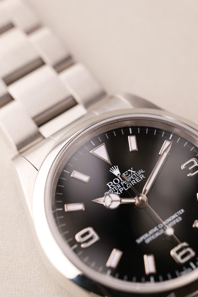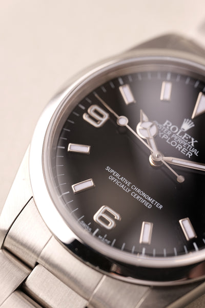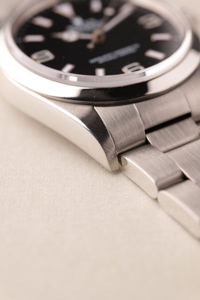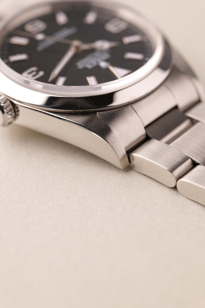Description: The 14270 Explorer is the close descendant of the infamous 1016 Explorer. Maintaining the 36mm case, it wears with ease and pairs well with casual jeans or a summer suit. The lack of a thick bezel makes it the ideal discrete sports watch and has recently become a favorite of ours outside the traditional Sub or GMT watch.. The case is excellent on this watch and the lugs and thick and even all around.
