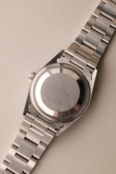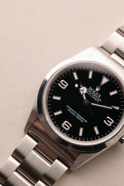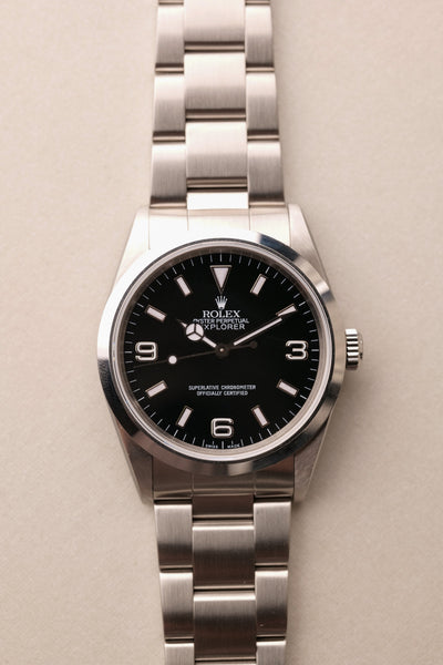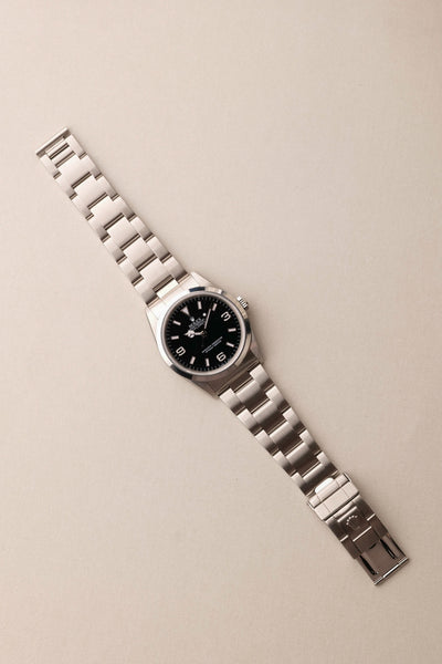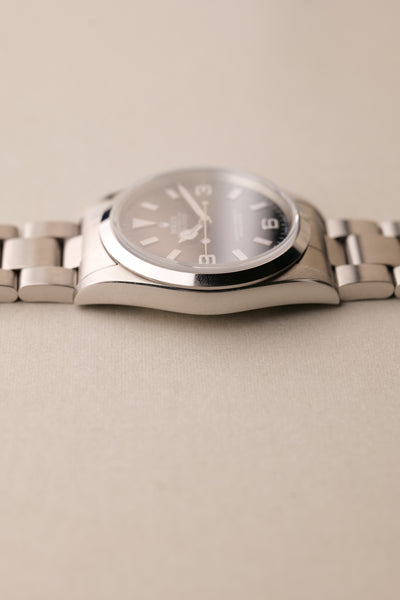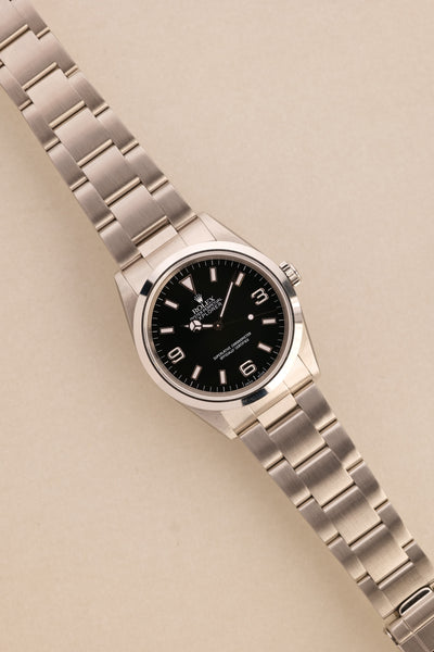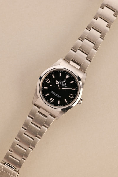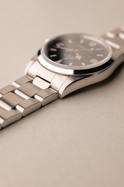 Description: A very clean Rolex 14270 Explorer. This watch originated in Japan and comes to us in excellent shape. The case is thick and sharp all around and is consistent with a lot of Rolex’s that originate in Japan. The case is 36mm and is the perfect sports Rolex that hides neatly under a dress shirt or with t-shirt and jeans