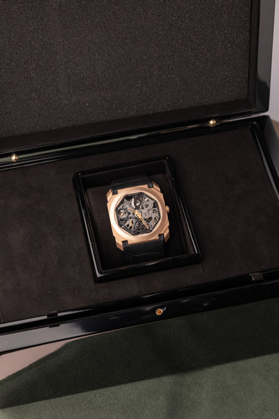 Description: It’s rare for us to get in the occasional new watch, but this Octo Finissimo came in from one of our clients. It is complete with box and papers and largely unworn. There doesn’t appear to be any scratches or wear marks on the case. An excellent piece that is a work of art.