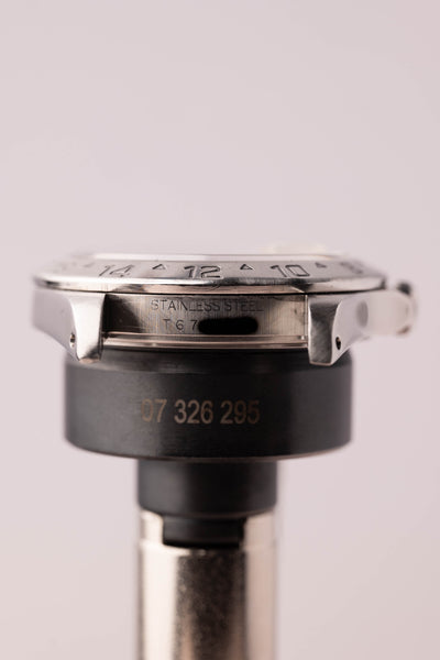 Description: If you don’t know about the Polar Explorer II yet, you must have been living under a rock for the past few years. This one has creamy tritium lume plots that contrasts nicely against the black surrounds and white dial.