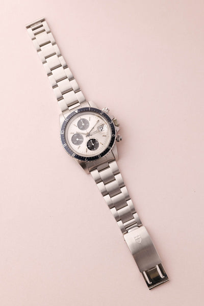 Description - Excellent example of the increasingly sought after 79170 chronograph. The dial reminds us of Daytona’s of the 80’s but clocked 90 degrees.